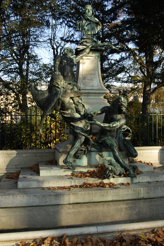 リュクサンブール公園内のドラクロア像 第一回のパリ万博では、第二帝政のナポレオン三世の指示により ドラクロアとアングルの2人の絵画のみ展示された。近代化を進めながら 一世時代のクラシック好み(ネオクラシック)は、新進の芸術家からは非難された。