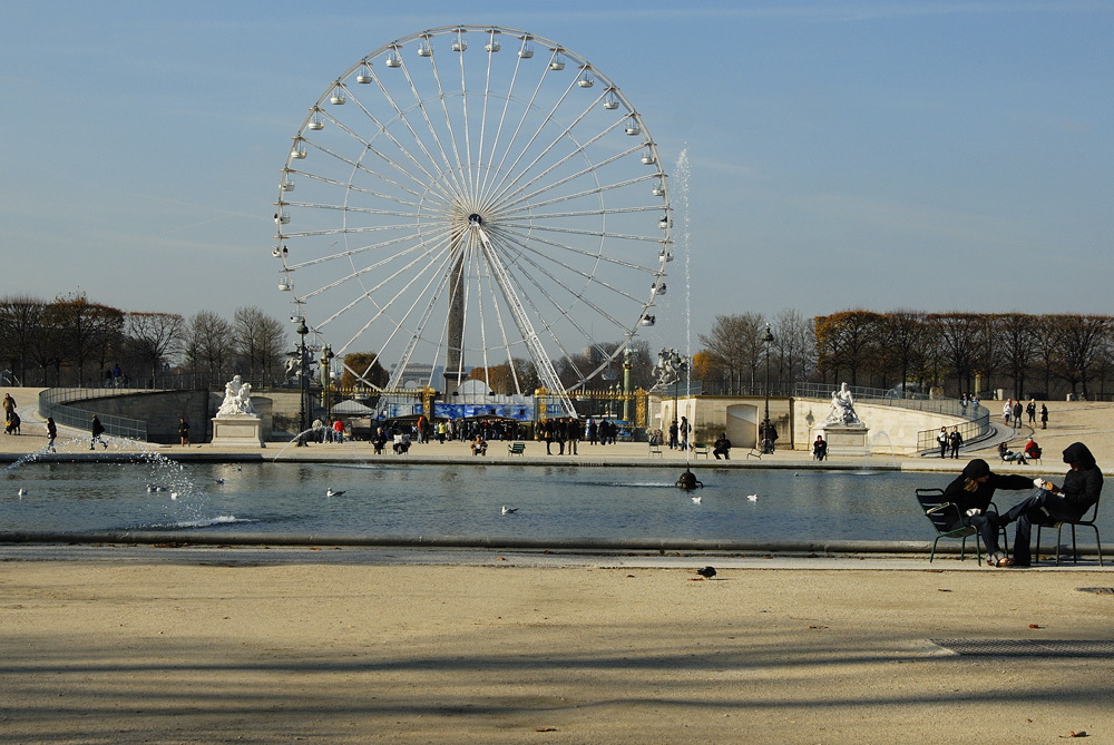 チュイルリー公園〜コンコルドのアベリスク〜シャンゼリゼ、凱旋門、そして新凱旋門jの直線設計を少しずらせて撮った。
