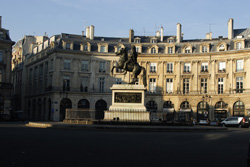 17世紀後半、この広場にフィヤード元帥によるルイ14世を讃える騎馬像が据えられた。ルイ14世像は、頭上に月桂樹を載き戴冠式用の礼装をしている。広場を囲む建物のファザードはマンサールが設計したが現在の騎馬像は革命時に取り壊され、19世紀に再建されたものである