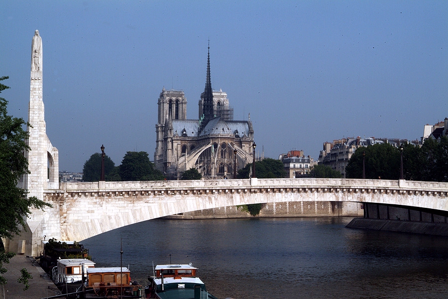 左岸側はパリの守護聖人である聖ジュヌヴィエーヴ像を戴く15mの高さの塔が建っている。