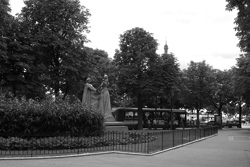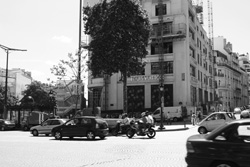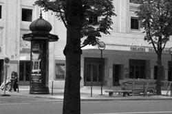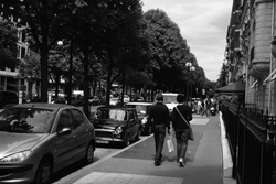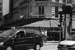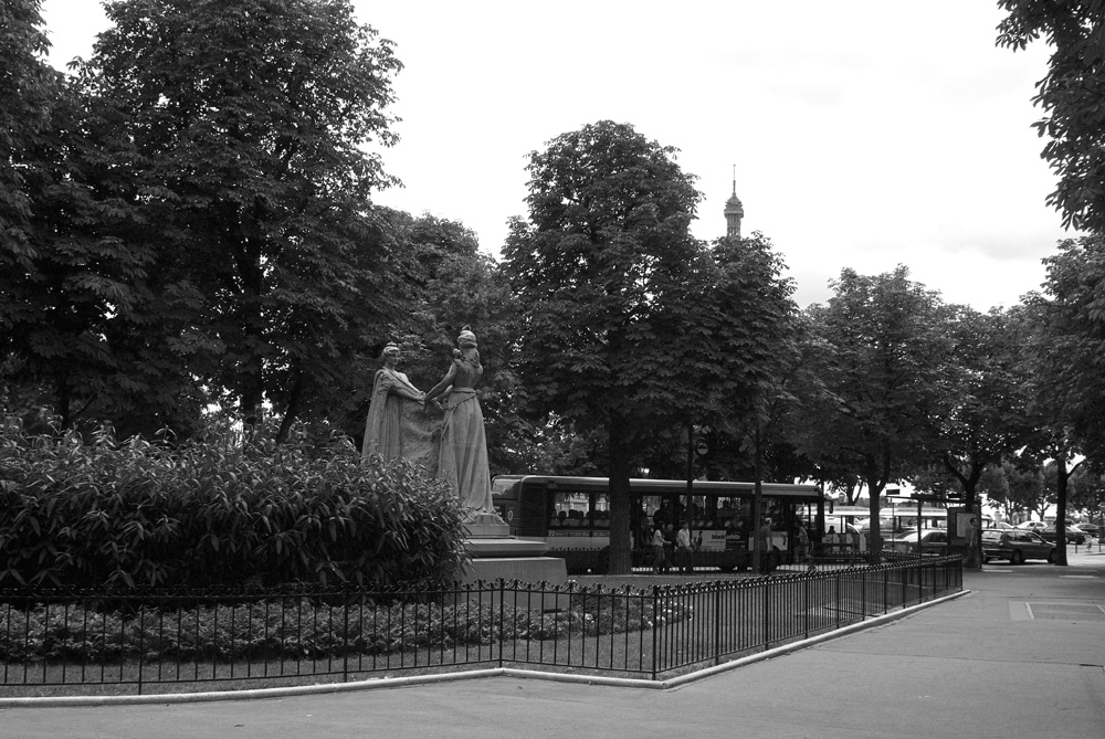 メトロ1号線をジョルジュサンク駅で降り、いつも通りなれた出口へと向かい、シャンゼリゼ ジョルジュサンク交差点へと出る。 昨年来より工事中で、パリでは例外的に装飾した工事中壁面を許されたルイヴィトン社前に出る。 セーヌ河方向に下りると著名ブランド店が林立る地区になり、モンターニュ通りへと至る モンターニュ通りを西に、アルマ広場からアルマ橋を渡り、RER鉄道に乗ると、アンヴァリッド、オルセー、サンミッシェルと主要場所に自由に行ける。