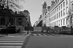 数日前まで、就職条件の法整備に関してソルボンヌを中心にデモや騒動があった。 商店街のガラスなどにその名残は残っていたが、それよりもソルボンヌ・サンジェック通りは封鎖されいたことには驚かされた。 というのも定宿はソルボンヌ聖堂に隣接しており、ホテルの前が既に封鎖状態であったからである。
