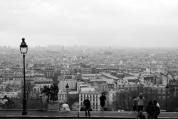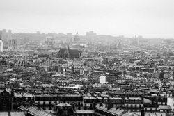 テアトル広場は、朝10時前で静かであった。それでも日本人観光客が多く訪れるのであろうか、 似顔絵描きが日本語で話しかけてくる。早々に引き揚げサクレクール寺院正面へ回りこみ、内陣に入り、 お賽銭代わりにローソクを購入して一覧する。 寺院の側面を見て、裏側に回り込み、少しテアトル広場方面に戻り、右折して階段を折りる。 最古のキャバレー、パリ市唯一残るブドウ畑等がある地区へと歩こう。、