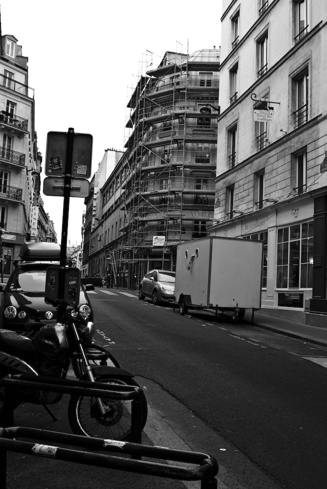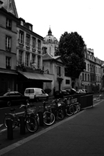 定宿前のRue de Cujas(この通りはローマ時代にすで幹線であり、その時代フォーラムのあった場所である。)を右に進み、 同時代のカルドと呼ばれた南北中央幹線であったサンジャック通りに出る。これを右折して坂を上るようにパンテオン前のすスフロ通りを渡り、サンジャック通り(中世はパリ最大のメインストリート)を南へ向かう。 ポルトロワイヤル大通りに出て、左折、ヴァルデグラース病院を通りを再び左折して、キューリー研究所方面へ向かいながら、ホテルへと戻る: シャッター順に配列。
