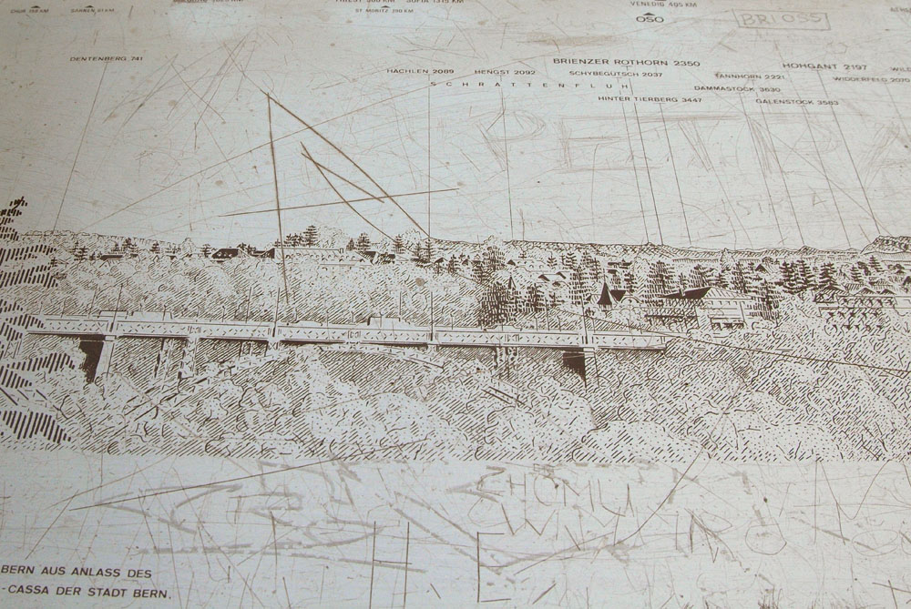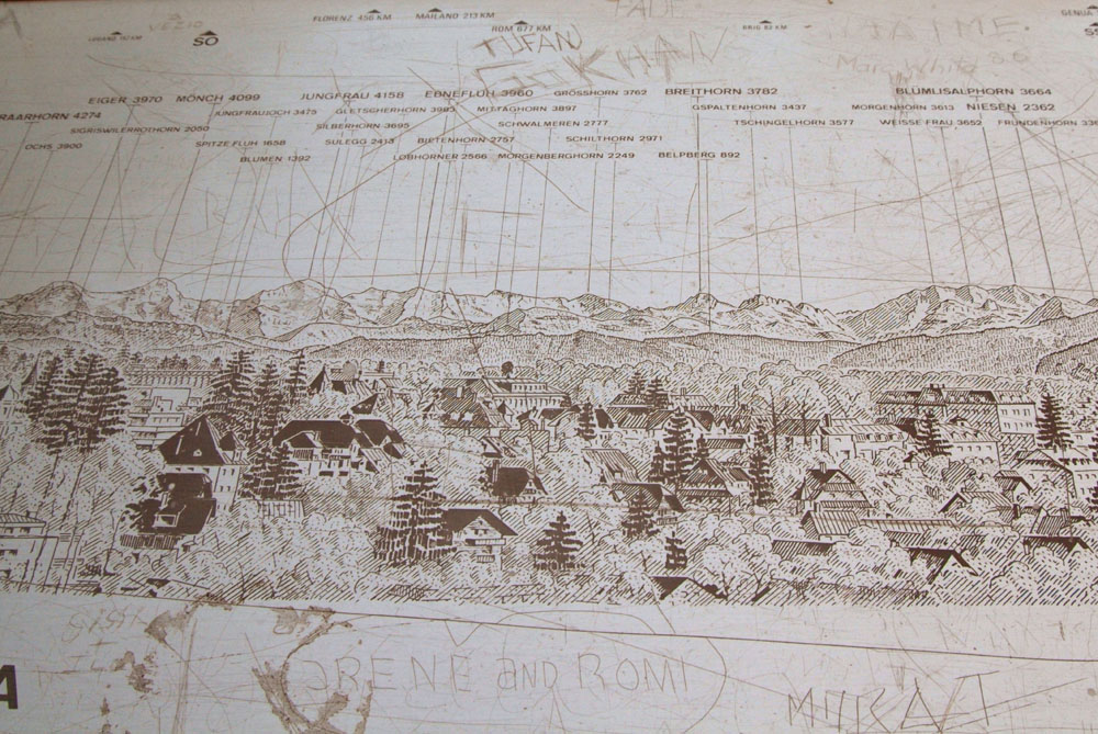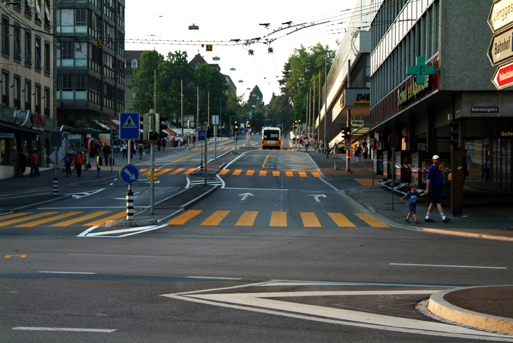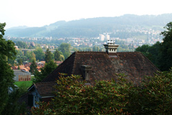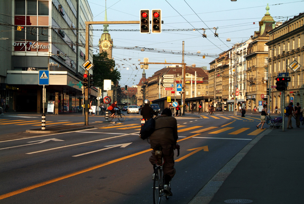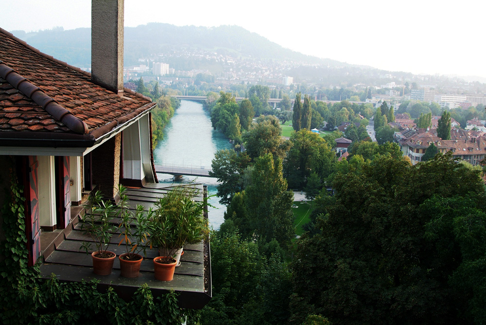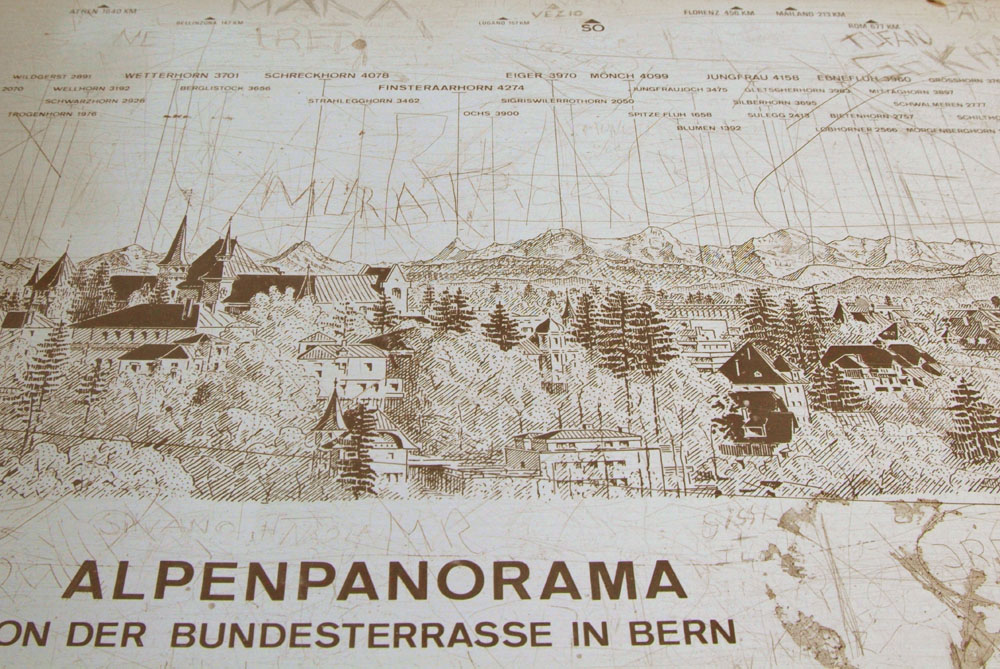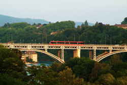 ベルン中央駅より、国会議事堂の展望台へ チューリッヒから夕刻ベルン駅裏側に着き、その近くの滞在ホテルより、散策に出る。 中央駅広場方面へ行き、右折して国会議事堂方面に向かう。議事堂裏側はアーレ川の走る低地にある旧市街の展望台で、 これに添って歩き、カジノプラッツ方面に向かう。