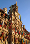 ハンザ同盟時代の中心都市のひとつであるアントワープの市庁舎、商館のある広場。