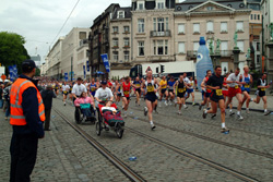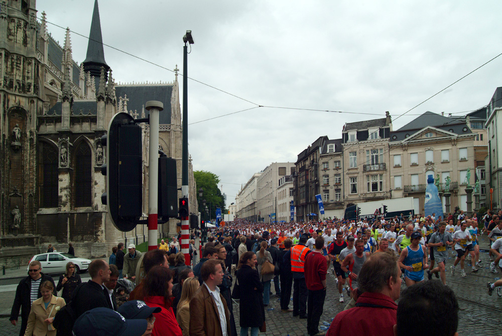 ノートルダム サブロン教会の前(Regentschaps通り)を市民マラソンが通る、突き当たりは最高裁判所。