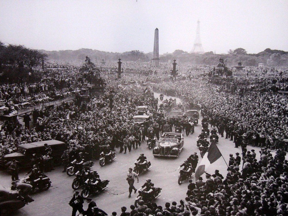 | 連合軍兵士の前で歓喜するノルマンディーの人 |