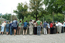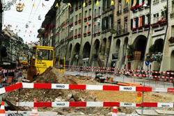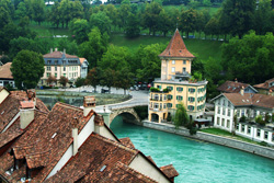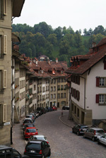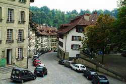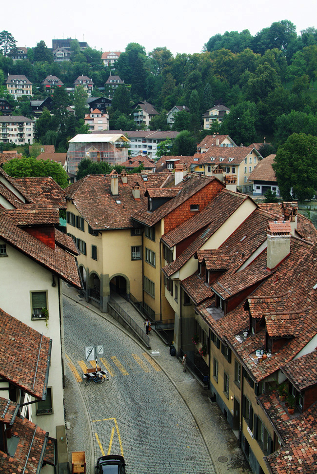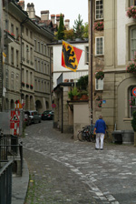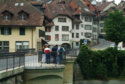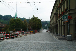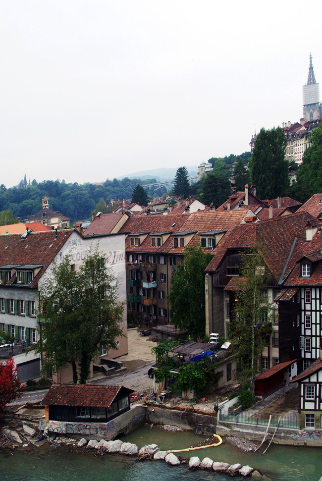 クラムガッセ通りのアインシュタインハウスから直進して、NYDEGGBRUCKE橋を渡り、熊公園に向かう。 その後、アーレ川の氾濫直j後の河岸低地住宅地方面へ